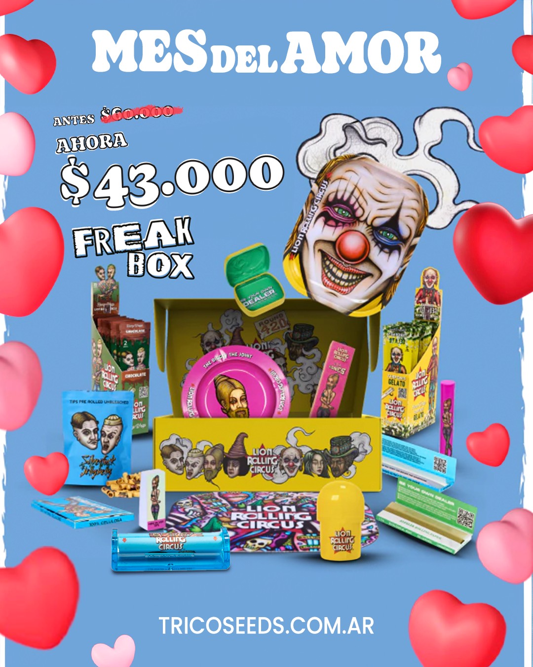Freakbox – El kit esencial de Lion Rolling Circus, diseñado para los verdaderos amantes del circo. Esta caja incluye todo lo que necesitas para una experiencia completa: