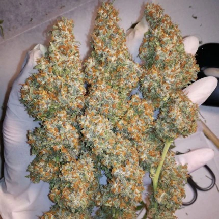 Produce unos cogollos realmente hermosos. Las flores están todas repletas de tricomas; una mirada con un microscopio muestra el verdadero potencial de esta variedad. Los cogollos de color verde claro están cubiertos de una gruesa capa de resina blanca con hermosos pelos de color naranja y, a veces, marrón claro.